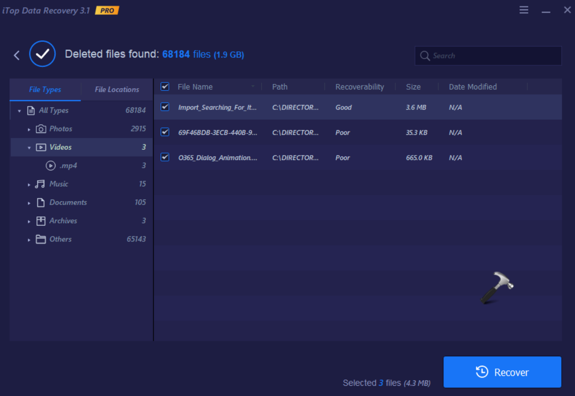 ITOP veri kurtarma, kayıp veya silinmiş dosyaları kurtarmak için inanılmaz bir araçtır. Bu araç, dijital kamera, USB sürücüsü, harici disk, sabit disk, Windows geri dönüşüm kutusu, SSD gibi birçok cihazdan dosyaları alabilir. Bu uygulama ile belgeleri, müzik, videoları, fotoğrafları ve sistem dosyalarını kurtarabilirsiniz. ITOP veri kurtarma ile ilgili en iyi şey, dosyaları sadece birkaç tıklamada geri kazanmasıdır.