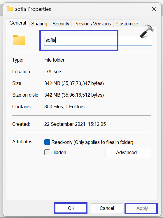 Yöntem 4: Özelliklerden bir klasörü yeniden adlandırın