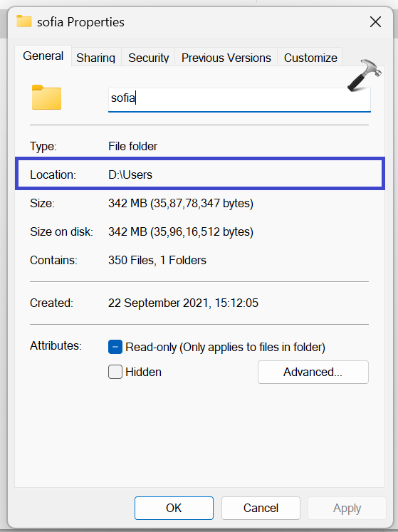 Klasörün tam yolu, yeniden adlandırmak istediğiniz klasörün yolunu içerir. Bunun için klasöre sağ tıklayın ve şunu seçin:Özellikler".