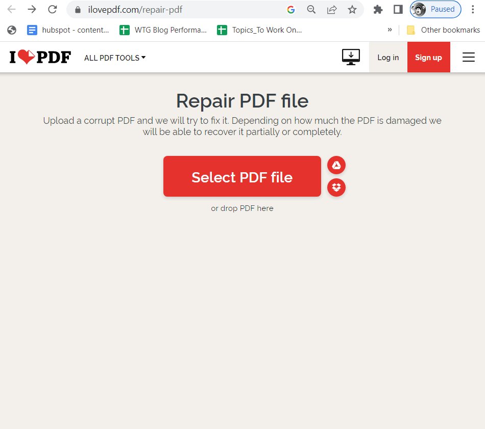 Hareket halindeyken hasarlı PDF dosyalarını çevrimiçi olarak onarabilirsiniz. Örneğin ILOVEPDF, PDF dosyalarını onarmak için en iyi platformlardan biridir. İşte bunu nasıl yapabilirsiniz -