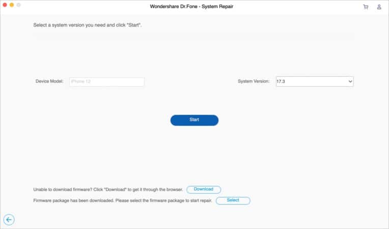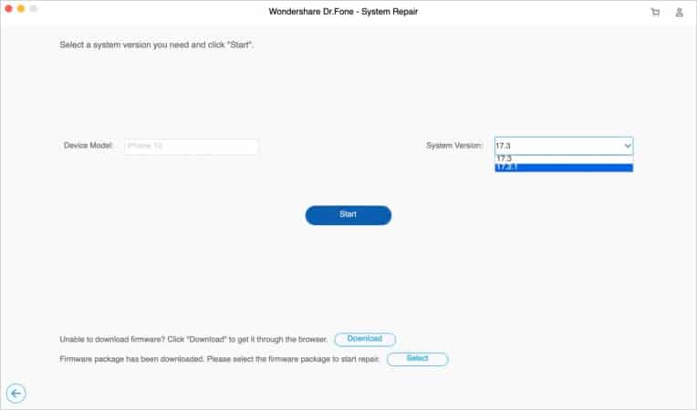 Ayrıca, iOS'unuzu en son sürüme güncellediyseniz ve beklendiği gibi çalışmıyorsa, önceki sürüme geçmek istersiniz. Neyse ki, Wondershare Dr.Fone'dan sistem onarımı, önceki paketi otomatik olarak indirip kurarak bunu yapabilir.