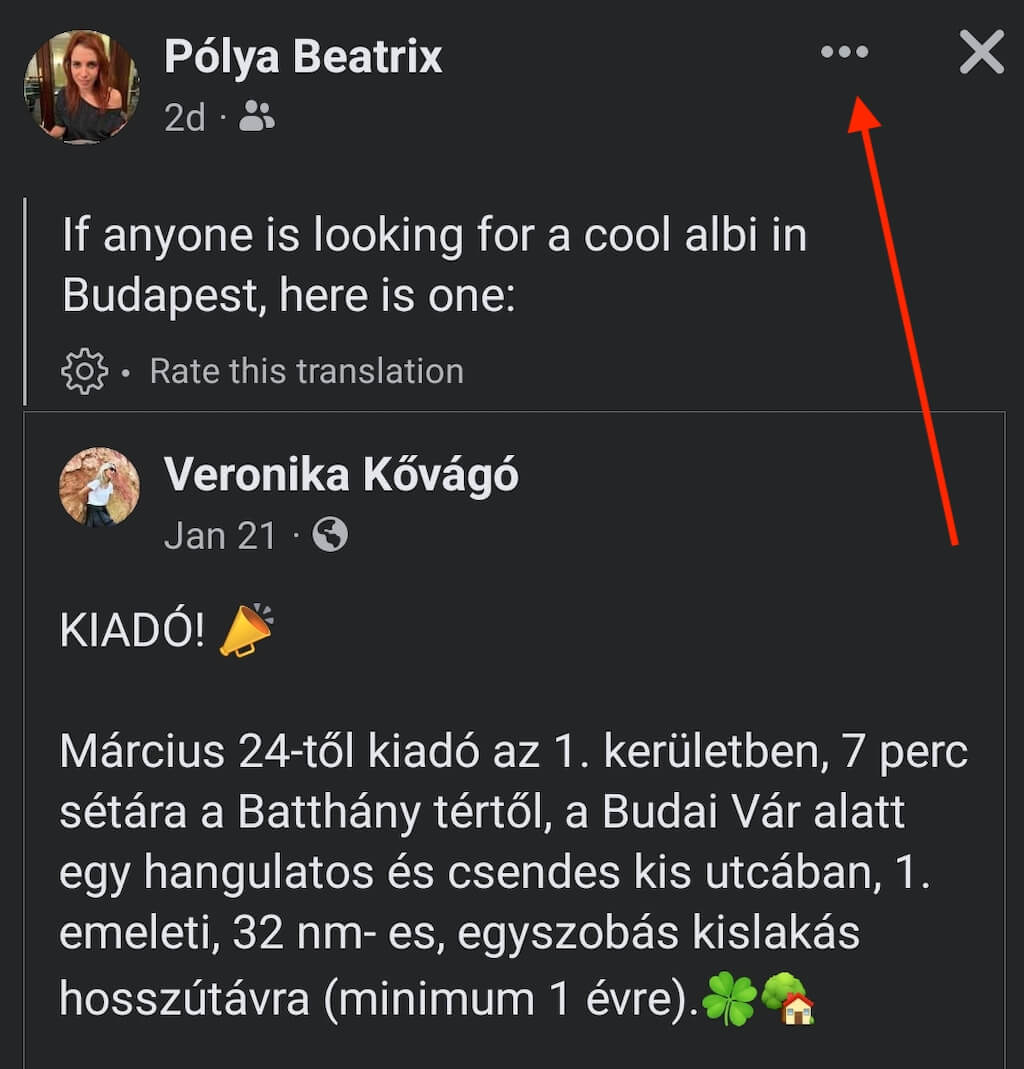 - SeçinÜç noktalı menü simgesiPostun sağ üst köşesinde.