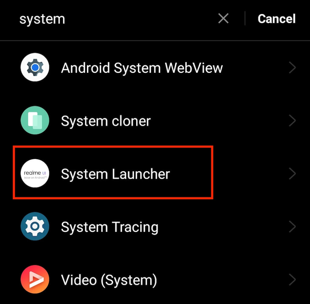 - Uygulamalar listesindeki varsayılan başlatıcıyı arayın. Sonra seçin.