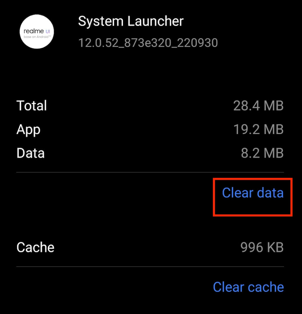 - Seçeneği seçinBaşlatıcı Verileri Temizle.