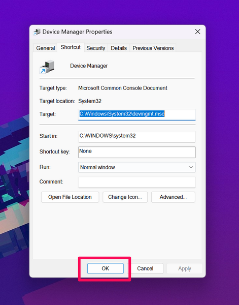 Bu nedenle, bir Cihaz Yöneticisi kısayolu oluşturma ve istediğiniz zaman Windows 11'de yönetici haklarıyla çalıştırma gereksinimini yapmak için aşağıdaki adımları izleyin: