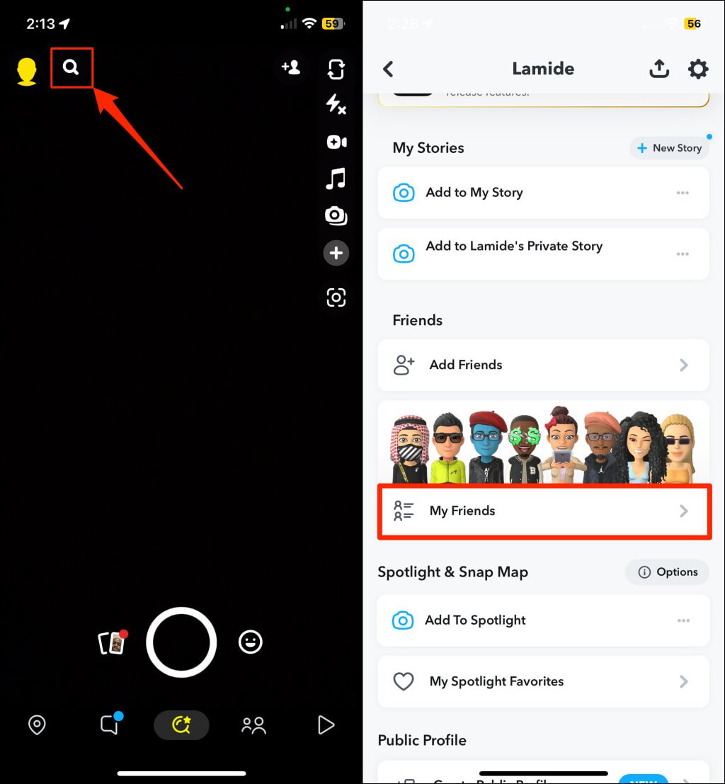 - Snapchat profilinizi açın ve dokununArkadaşlarım“Arkadaşlar” bölümünde.
