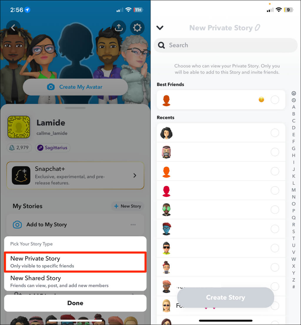 Snapchat özel bir hikaye oluştururken tüm arkadaşlarınızı sergiler. Snapchat profilinizi Android veya iOS uygulamasında açın ve özel bir hikaye oluşturmak için aşağıdaki adımları izleyin.