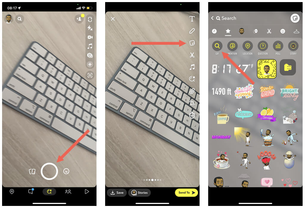 Snapchat Snaps için GIF özelliğini kullanmak için:
