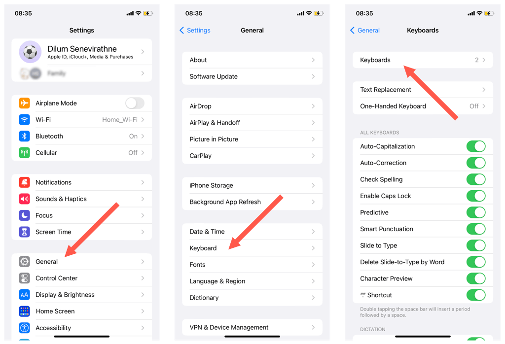 - Ayarlar uygulamasını açın ve gidinGenel>Klavye>Klavyeler.