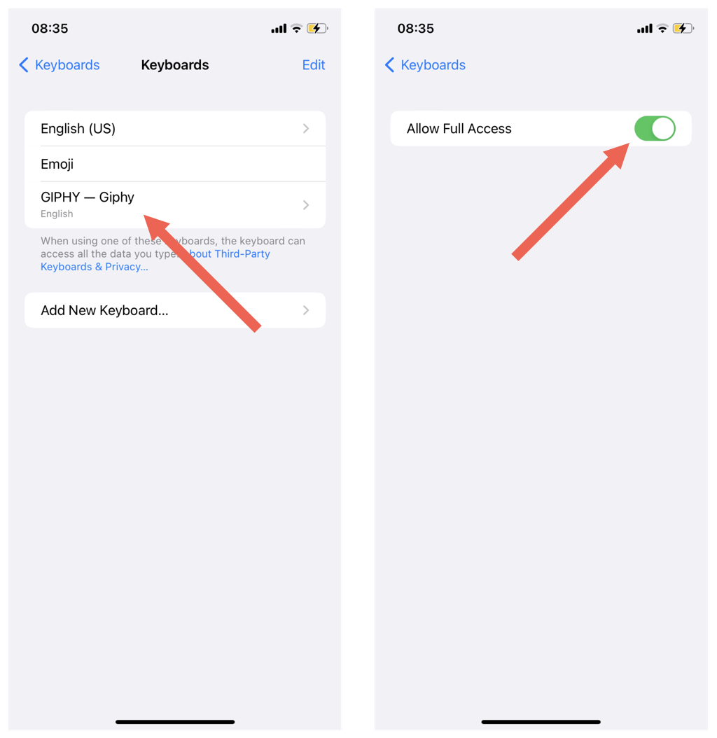 - Tuta dokununKürekAktif klavyelerin bir listesini oluşturmak için simge - seçinGIPHY - GIPHY.