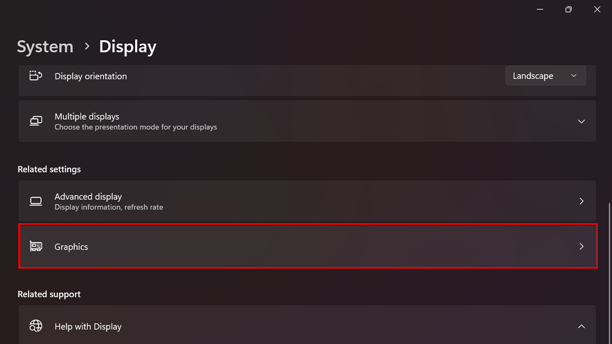 Ancak, birden fazla grafik kartınız varsa ve belirli bir uygulamanın yüksek performanslı kartı kullanmasını veya pil ömrünü iyileştirmek için en az güçlü olanı istiyorsanız, bu özelliği “” ile kontrol edebilirsiniz.Görüntülemek”Ayarlar sayfası.