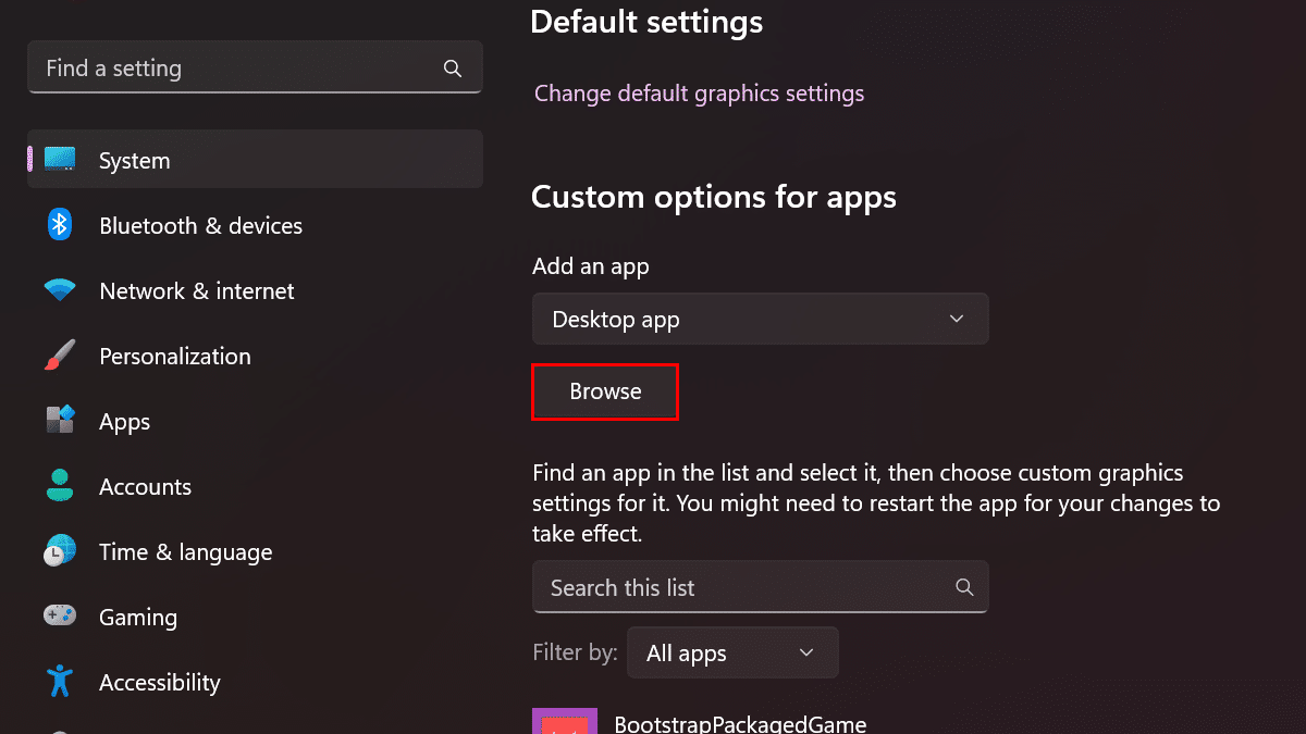 Windows 11'deki uygulamalar için varsayılan GPU'yu değiştirmek için şu adımları kullanın: