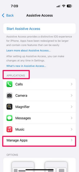 5.Ayrıca dokunabilirsinizUygulamalar Seçeneği YönetinileUygulamalar ekleyin veya kaldırınyardımcı erişim kullanıcı arayüzüne/.