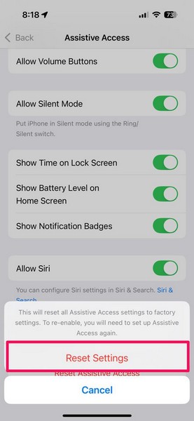Bununla birlikte, iPhone'unuzda yardımcı erişimi sıfırlamak için aşağıdaki adımları izleyebilirsiniz:
