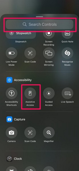 Şimdi, en son iOS 18 güncellemesine sahip bir iPhone kullanıyorsanız, cihazınızın kontrol merkezinden yardımcı erişimini etkinleştirebilirsiniz. Ancak, bunu yapmadan önce, yardımcı erişim kontrolünü iOS 18'deki özelleştirilebilir kontrol merkezine eklemeniz gerekecek ve işte bunu nasıl yapacağınız aşağıda açıklanmıştır: