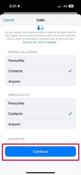 13.Örneğin, devam ederseniz veAramalar Seçeneği, yapabilirsinizKişileri veya iletişim gruplarını seçinÇağrı almak veya arama yapmak istediğinizden. Ayrıca, çağrı içi ekran için tuş takımını ve hoparlör düğmelerini etkinleştirmeyi veya devre dışı bırakmayı da seçebilirsiniz.