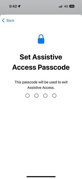20.Bu yüzden,4 haneli bir parola girinYardımcı erişim için veAynı tekrar girinOnaylamak için aşağıdaki ekranda.