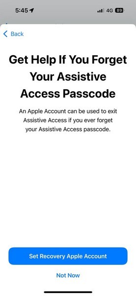 22.Bu nedenle, yardımcı erişimden çıkmak için bir kurtarma Apple hesabı eklemek istiyorsanız,Kurtarma Apple Hesabı düğmesini ayarlayınVeayarlamak için ekrandaki talimatları izleyin.