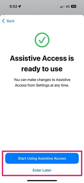 25.Son ekranda,Yardımcı Erişim düğmesini kullanmaya başlayınözelliği hemen kullanmaya başlamak için veyaDaha sonra girin düğmesiTasarruf etmek ve çıkmak için.