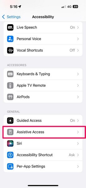 3.Bulmak için aşağı kaydırınYardımcı Erişim SeçeneğiVe açmak için dokunun.