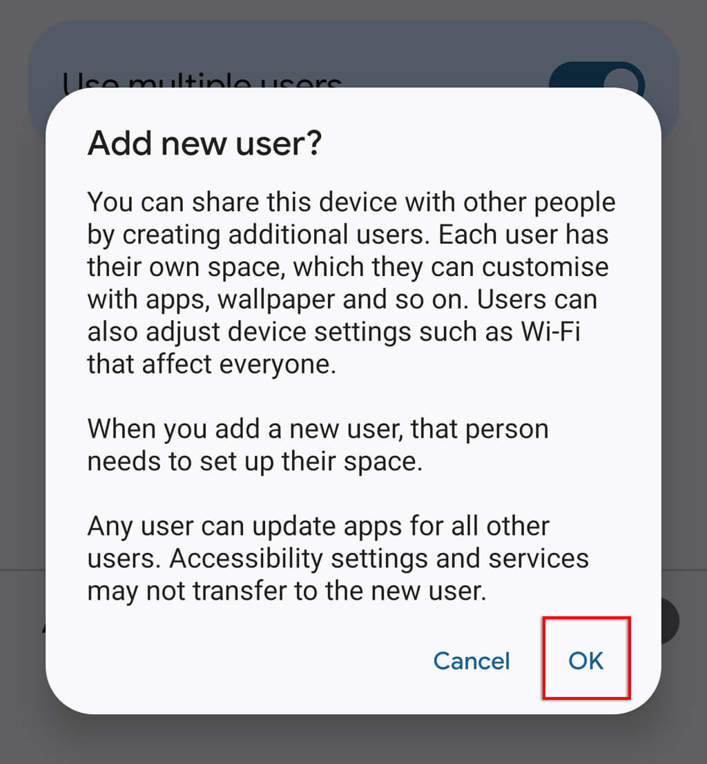 Not:Tüm Android sürümleri birden fazla kullanıcı hesabını destekler. Ancak, bazı cihazlar yapmaz. Google Pixel telefonları kullanıcı hesaplarını destekler, ancak Samsung Galaxy telefonları istemez. Öte yandan Samsung tabletleri yapar. Bu, hiçbir iPhone iOS sürümlerinin birden fazla kullanıcıyı desteklediği Apple ile tezat oluşturuyor.