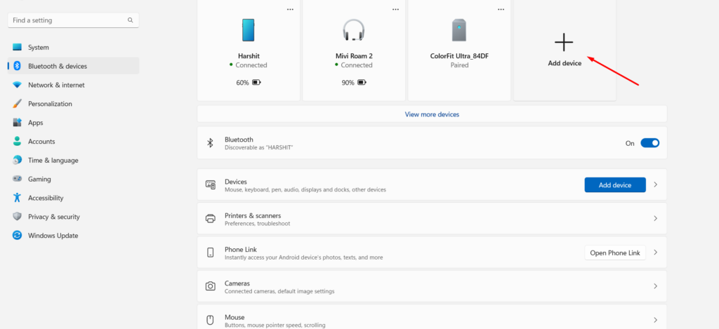 5.TıklamakBluetooth veya başka bir cihaz ekleyin.