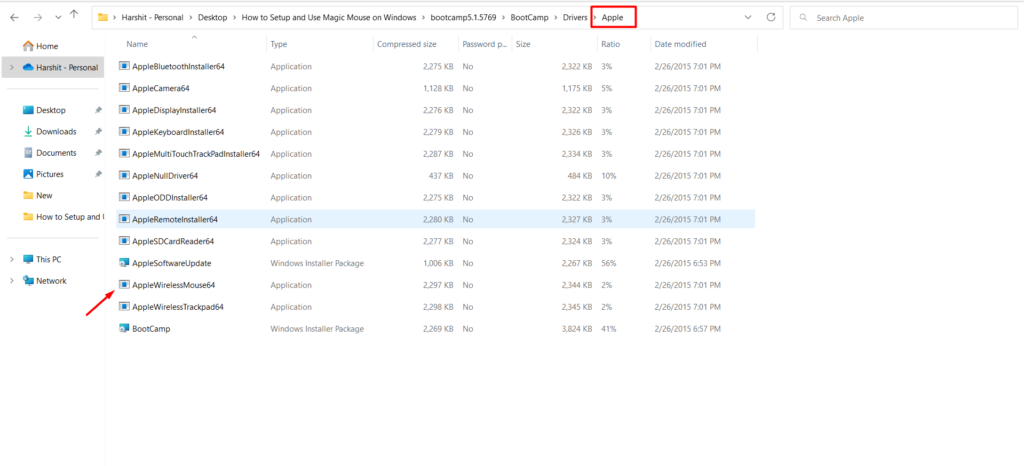 7.Aç$ Winpedriver $ klasör- Sonra gitApplewirelessMousedosya.