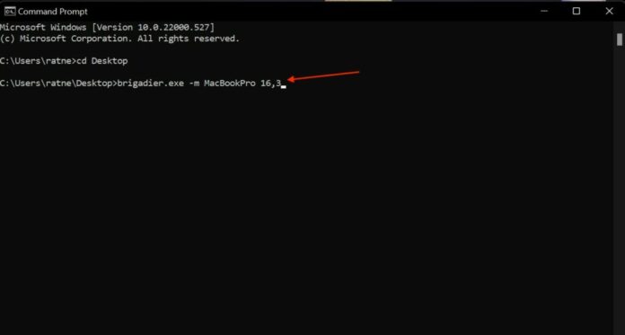 4.Bahsedilen komutu aynı CMD penceresine kopyalayın ve yapıştırın: