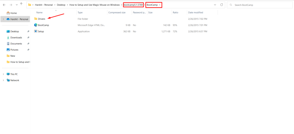 6.İçindeBootcampklasör, açınSürücülerklasör ve hareket etElmadosya.