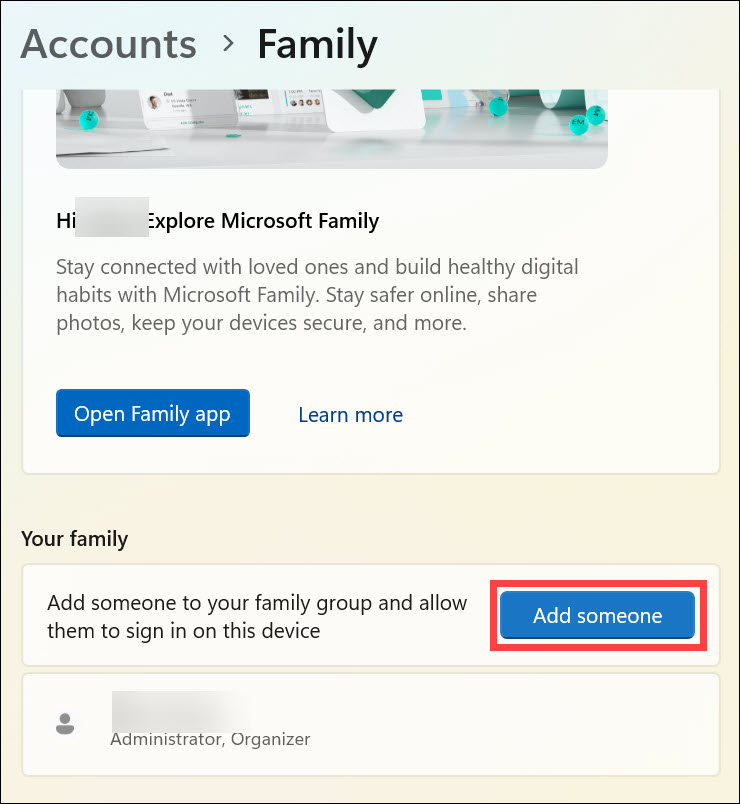 3.Bir sonraki sayfada, “Aileniz” başlığının altında tıklayınBirini ekledüğme.