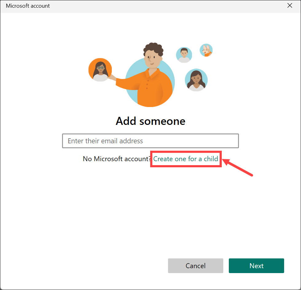 5.Ardından, çocuğunuz için benzersiz bir e -posta adresi yazın ve tıklayınSonraki.