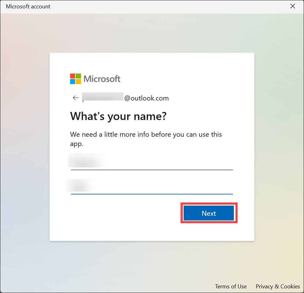 7.Çocuğunuzun adını ve soyadını girin ve tıklayınSonraki.