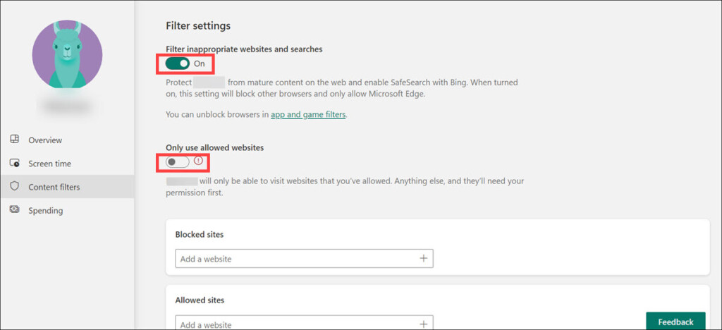 Microsoft ayrıca, çocuğunuzun uygunsuz içeriğe erişememesi için Edge tarayıcısı için web ve arama filtreleri ayarlamanıza olanak tanır. İşte bunu yapmanın adımları: