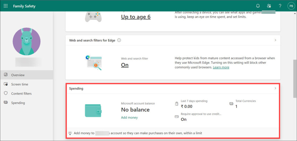 Microsoft ayrıca, çocuğunuzun uygulamalarda, oyunlarda ve diğer içeriklerde çevrimiçi olarak harcayabileceği para miktarını sınırlamanızı sağlar. İşte bunu yapmanın adımları: