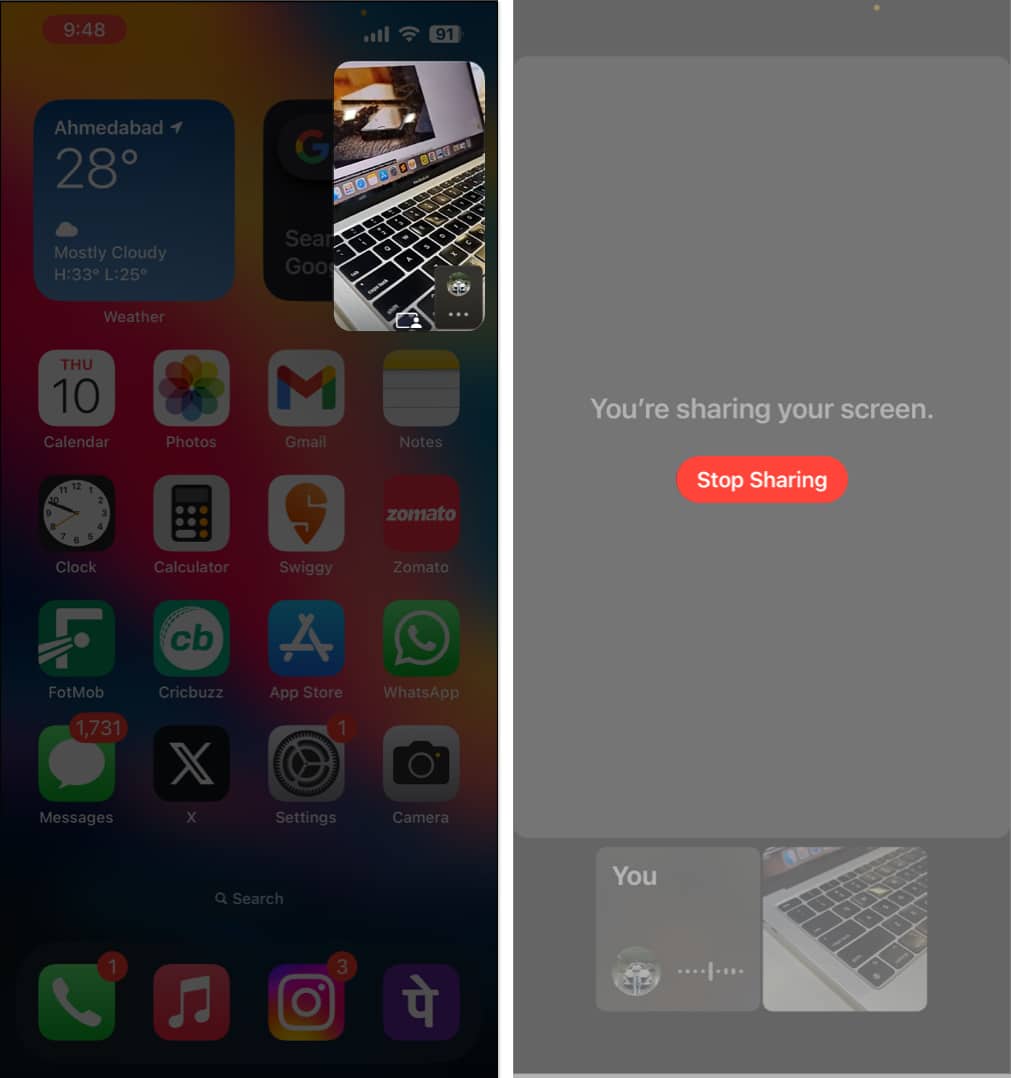 İPhone'da farklı bir uygulamaya geçersem ekran paylaşımına devam edebilir miyim?