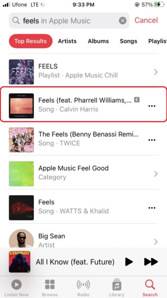 - Şarkı sözlerini paylaşmak istediğiniz şarkıyı arayın.