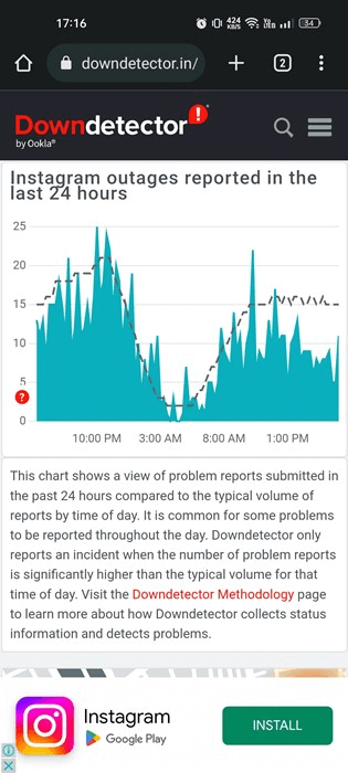 Instagram hikayelerini tekrarladığını fark ederseniz, Instagram'ın sunucularının sorun yaşadığı anlamına gelebilir. Instagram'ın kapalı olup olmadığını kontrol edin. Eğer öyleyse, oturum açılmak, resimleri/videoları görüntüleyememek ve makara videoları yükleme ile ilgili sorunlarla karşılaşabilirsiniz.