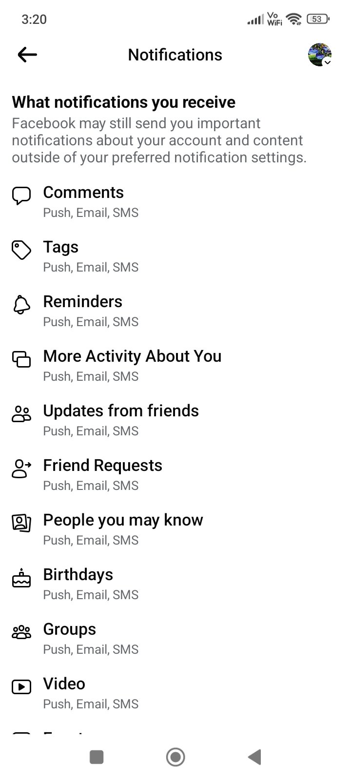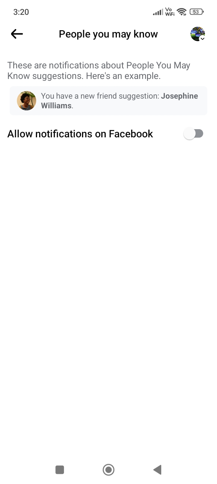 Hafif kullanıcı arayüzü farklılıklarının yanı sıra, Facebook'un mobil sürümleri web uygulamasıyla aynı Ayarlar menüsüne sahiptir. Facebook'un mobil cihazlarda arkadaş öneri bildirimlerini devre dışı bırakmak için şu adımları izleyin: