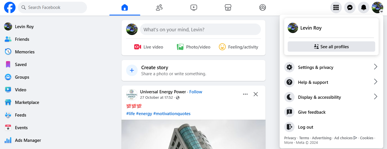 - Facebook'u açın ve açılır menüyü düşürmek için sağ üst köşedeki hesap simgesini tıklayın. İlk seçenek,Ayarlar ve Gizlilik, ihtiyacın olan şey.