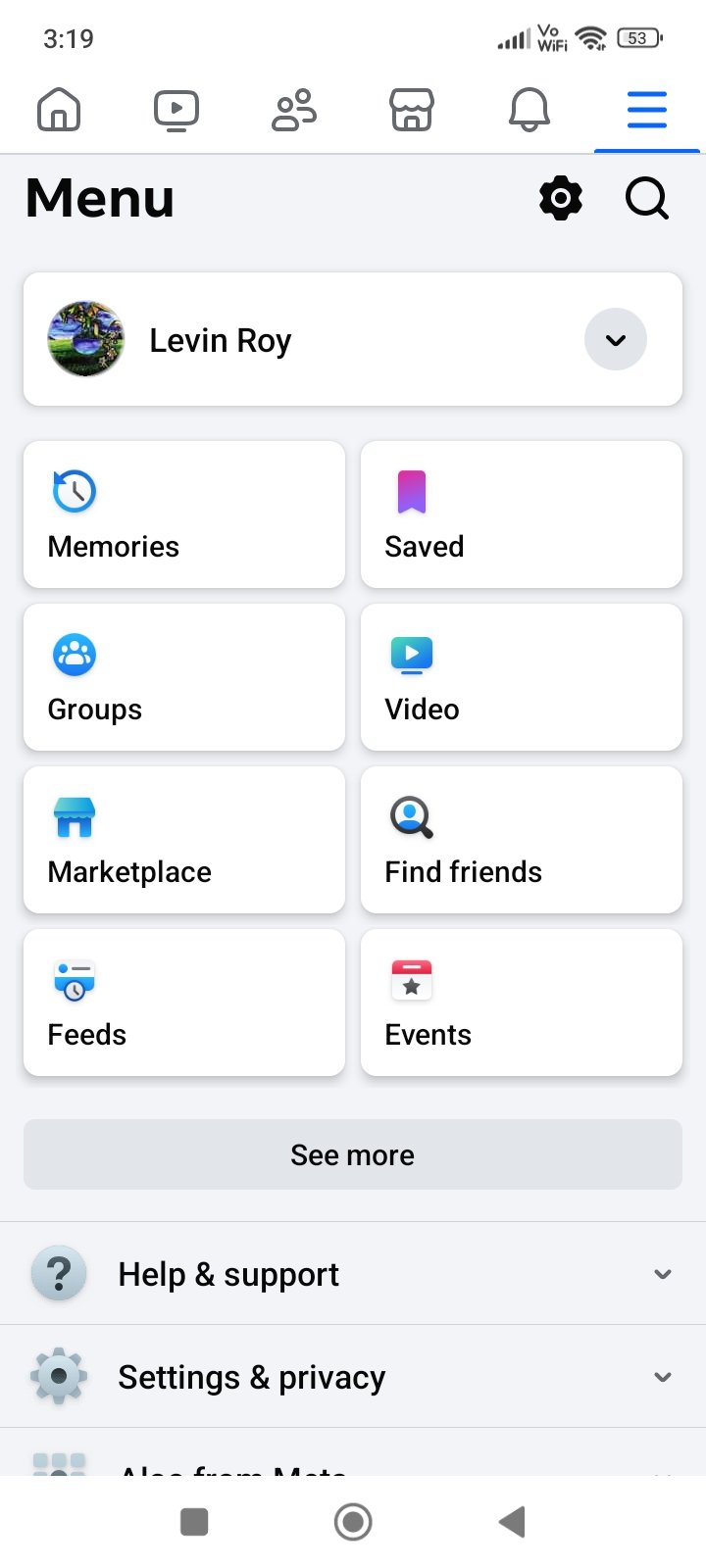 - Facebook uygulamasını açın ve sağ üstte profil simginize dokunarak menüyü açın.