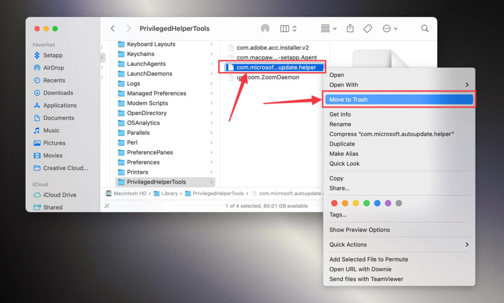 10.Sağ tıklayıncom.microsoft.autoupdate.helper.plistve seçÇöp kutusuna geçseçenek.