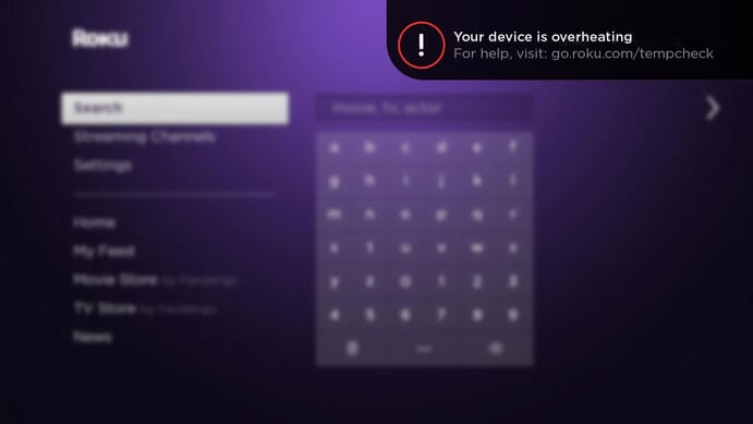 Roku aşırı ısındığında, ekranın sağ üst köşesinde uyarı mesajını göreceksiniz “Cihazınız aşırı ısınıyor. Yardım için:Go.roku.com/tempcheck”. Diğer semptomları da fark edeceksiniz. Roku dokunuşa sıcak olacak ve cihazdaki gösterge LED ışığı sürekli olarak kırmızı bir ışık gösterecek.