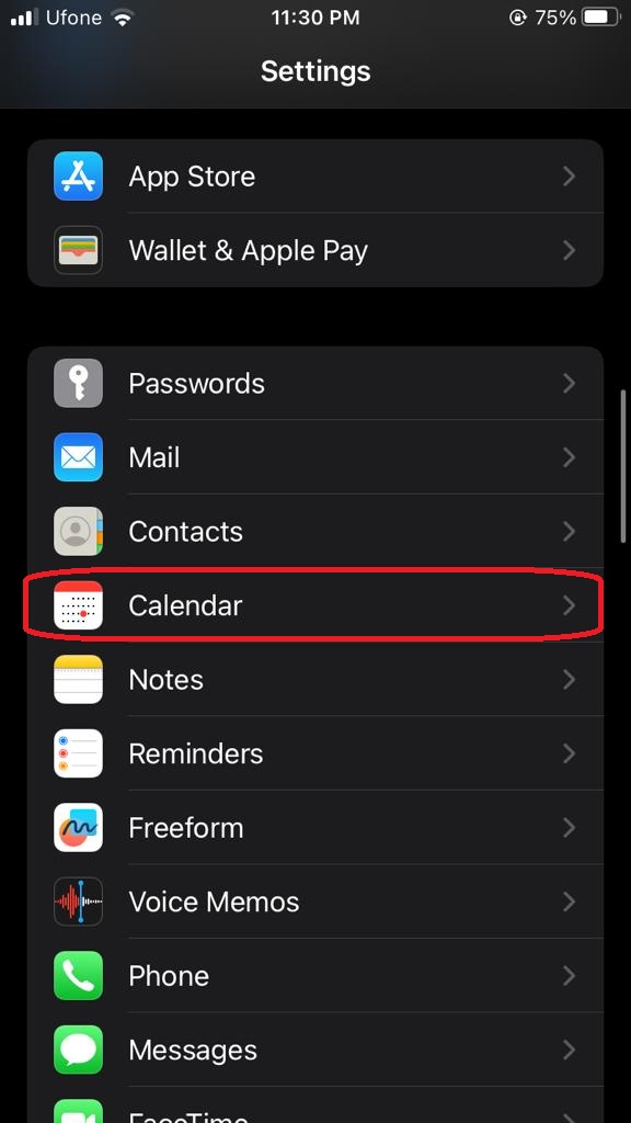 - Aşağı kaydırın ve üzerine dokununTakvim.