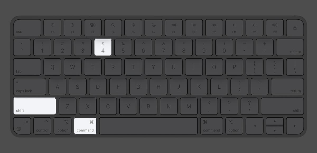 Seçilen bir bölümün ekran görüntüsünü almak için birlikte basınKomut + Shift + 4.