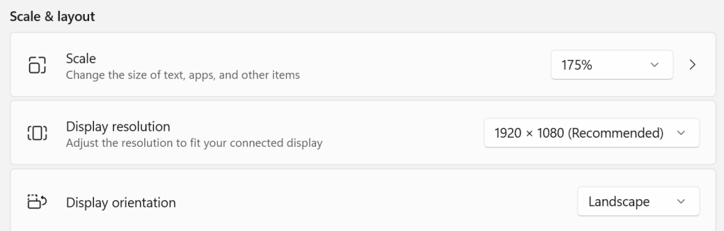 3. Adım:Şimdi, sağ tarafta, ölçek ve düzen bölümünü bulun ve gelişmiş ölçeklendirme ayarlarını tıklayın.