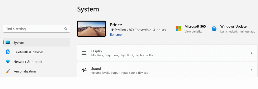 2. Adım:Sol paneldeki Sistem sekmesine tıklayın ve ardından sağ taraftaki ekrana tıklayın.