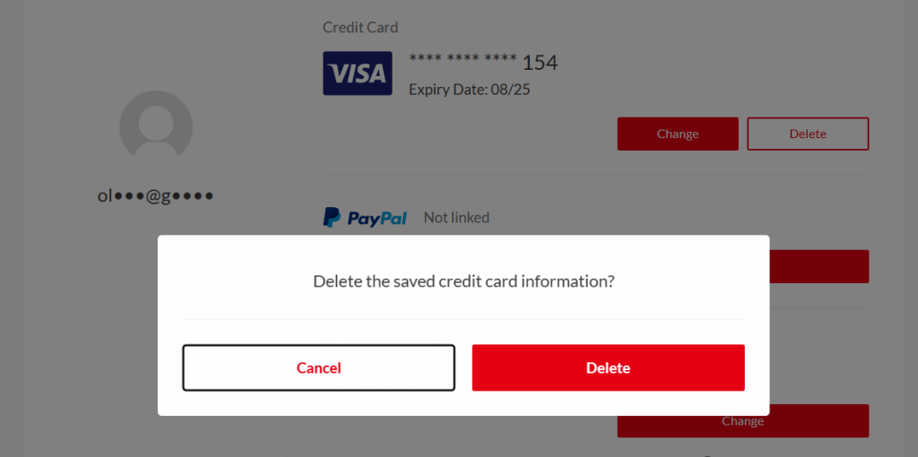 - SeçinSilmek“Kredi Kartı” bölümündeki kart (lar) ın yanındaki düğme.