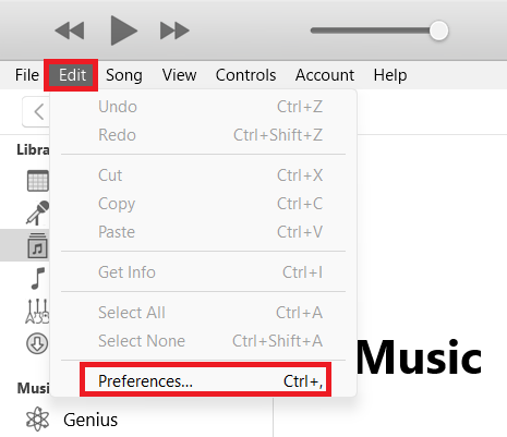 4.Apple sertifikalı bir kablo kullanarak iPhone'unuzu PC'nize bağlayın. Bundan sonra tıklayınDüzenlemekMenü çubuğundan ve ardından seçinTercihler.