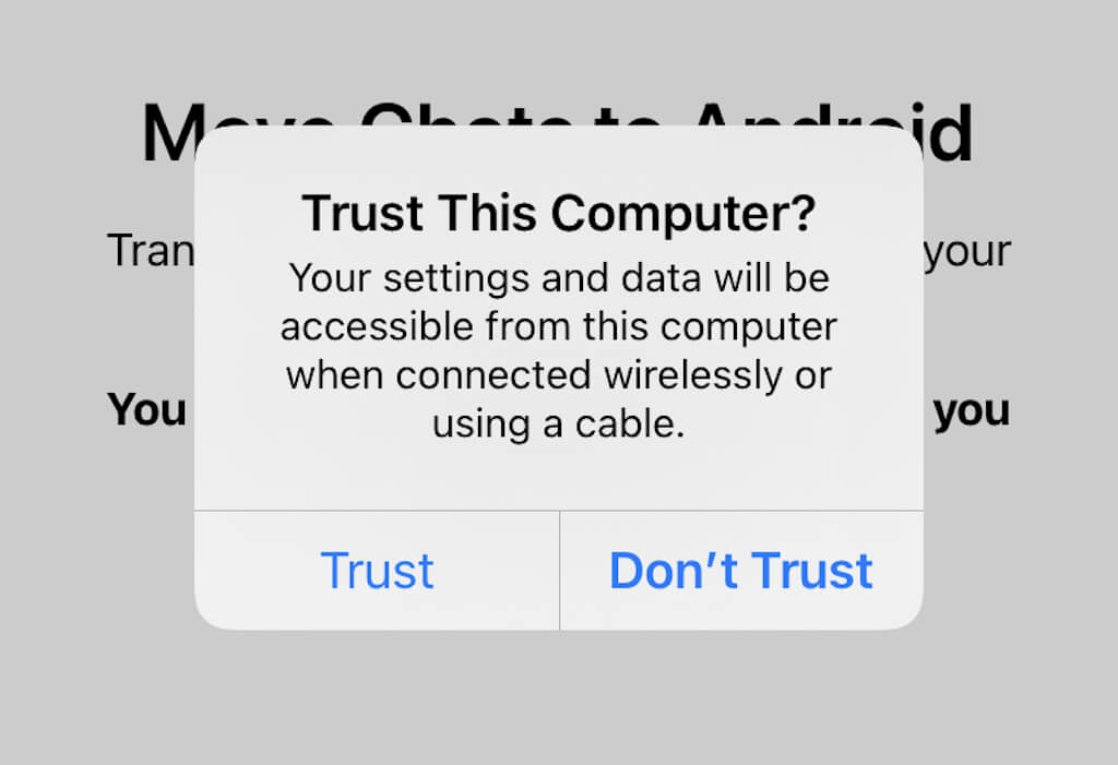 - ARAYINBu bilgisayara güvenmek mi?İPhone'unuzda açılır ve dokununGüvenveyaİzin vermek.