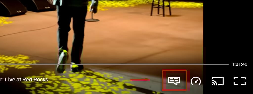 - Ekranın sağ alt köşesinde, imlecinizi üzerine getirin.Altyazı simgesi. Küçük bir çizgi film iletişim kutusu gibi görünüyor.